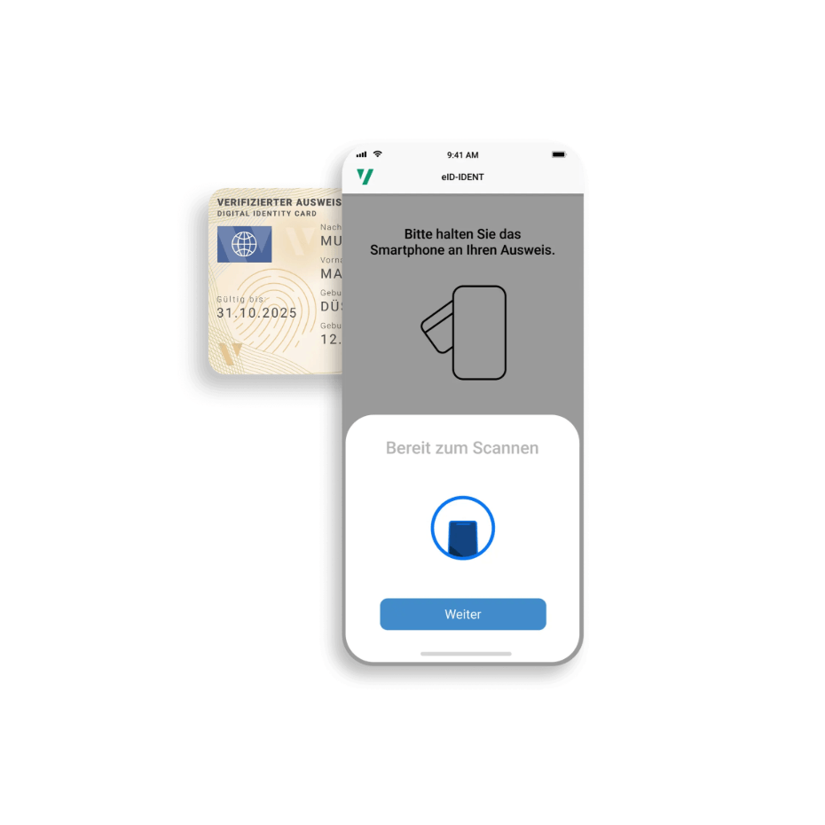 Mit der Online-Ausweisfunktion (eID) Ihres Personalausweises identifizieren Sie sich besonders schnell und sicher. Die Prüfung erfolgt automatisch, ohne Wartezeit.