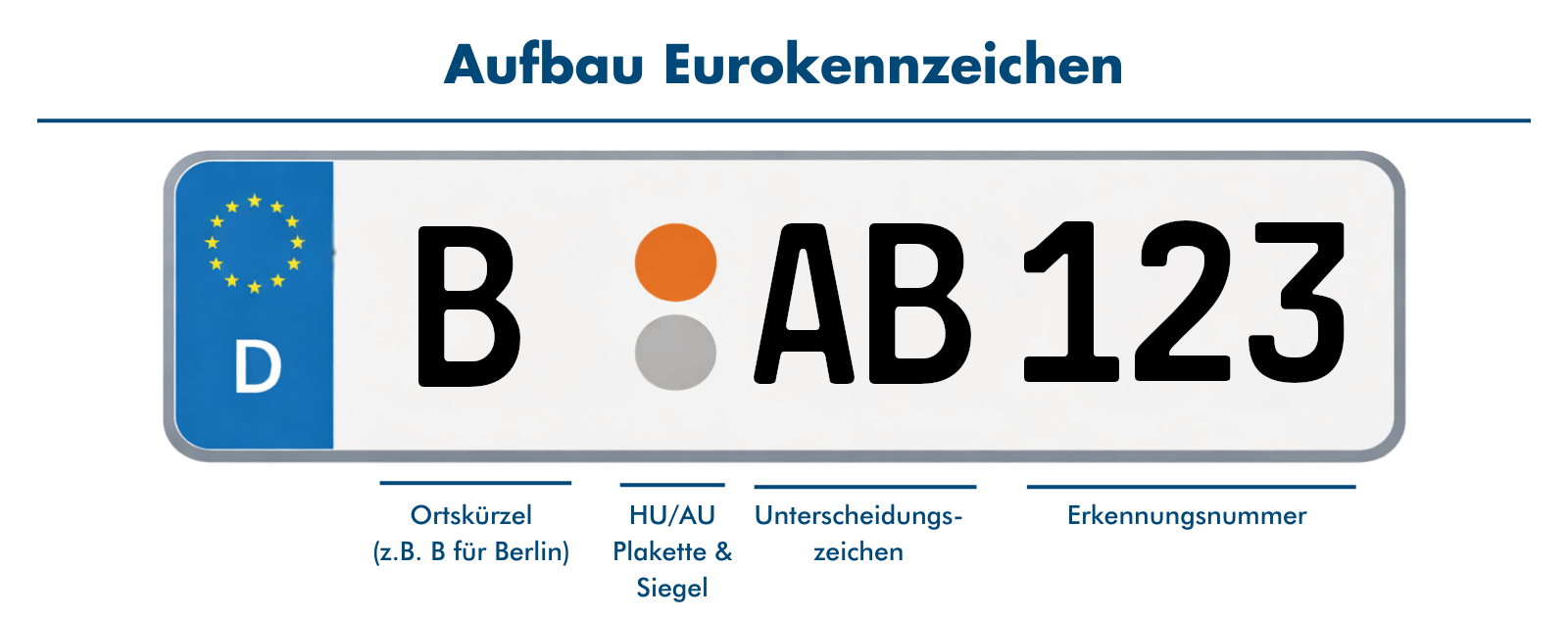 Seit dem 01. November 2000 wird bei der Neuzulassung von Fahrzeugen in Deutschland ausschließlich das Euro-Kennzeichen herausgegeben. Die wesentlichen Merkmale dieses Euro-Kennzeichens sind der Sternenkranz der EU und das jeweilige Länderkürzel, die am linken Rand des Kennzeichens auf einem blauen Streifen aufgedruckt sind. Durch das EU Kennzeichen erhalten fast alle Europäischen Länder ein optisch einheitliches Kfz Kennzeichen.
